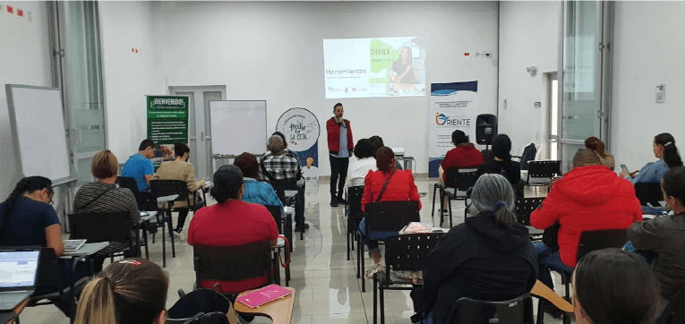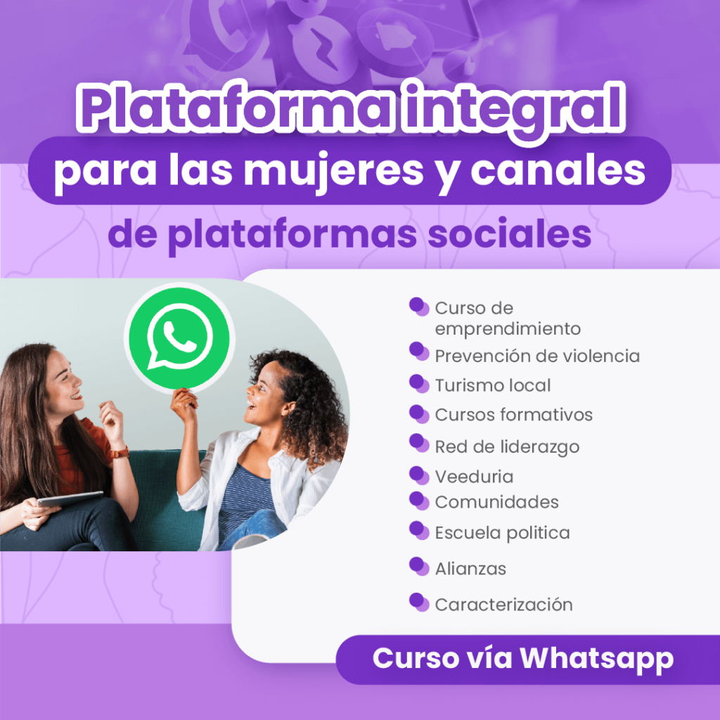 Este proyecto crea redes de apoyo y mentoría para mujeres a través de cursos cortos impartidos en WhatsApp. Los cursos abordan temas de formación ciudadana, veeduría, y participación política, con el objetivo de fomentar el liderazgo femenino. Al integrar estas temáticas, se empodera a las mujeres para que tomen roles activos en la toma de decisiones políticas y empresariales.